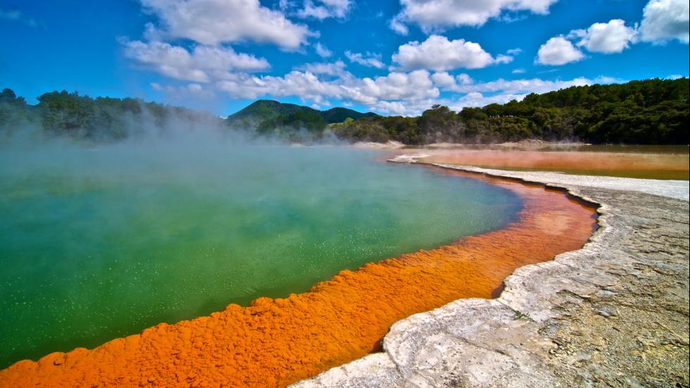 Avete sempre sognato di immergervi in una vasca di champagne? O addirittura in una piscina di champagne… vi sembra impossibile? Invece è così, o meglio, il nome della piscina è “Champagne Pool” si trova in Nuova Zelanda ed è piena di un liquido che si assomiglia molto allo champagne per via del grande quantitativo di anidride carbonica che crea una sostanza in mare spumeggiante e dai colori accesi per via di una ricca deposizione di minerali e silicati, che però la rendono inospitale, l’acqua di questa piscina si è formata circa 900 anni fa dopo un’eruzione “termale” che ha creato così questa piscina larga 65 metri e profonda 62. Attenzione però, l’acqua ha una temperatura di 74 gradi, quindi forse è meglio la vasca da bagno che abbiamo in casa