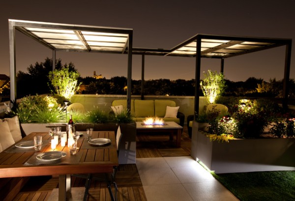 Anche un piccolo giardino può rivelarsi un luogo pieno di carattere, soprattutto quando è ben arredato e illuminato. La luce può generare emozioni attraverso percorsi luminosi che di notte trasformano il verde. La scelta di illuminare alcune parti del giardino sarà il risultato di un percorso intuitivo che guiderà la vista a soffermarsi sui punti più interessanti dello spazio. In primo luogo occorre tener presente che il comfort visivo si ottiene creando un insieme armonico di luci e ombre, tenendo conto del fatto che la luce diffusa è morbida e produce ombre attenuate, al contrario la luce orientata verso un punto preciso produce una buona modellazione delle piante e delle strutture architettoniche. Questione di equilibrio. Per creare la propria regia della luce esistono diverse strade. È possibile illuminare i percorsi sul prato collocando delle ciotole di terracotta che oltre ad illuminare vi preserveranno anche dalle zanzare, oppure potete dislocare delle lanterne in modo più accentuato lasciando che siano le sagome delle piante ad emergere dal buio creando un contrasto di pieni e vuoti. Le lanterne da terra sono indicate per illuminare anche i sentieri di pietra e gradini. Creando magiche atmosfere