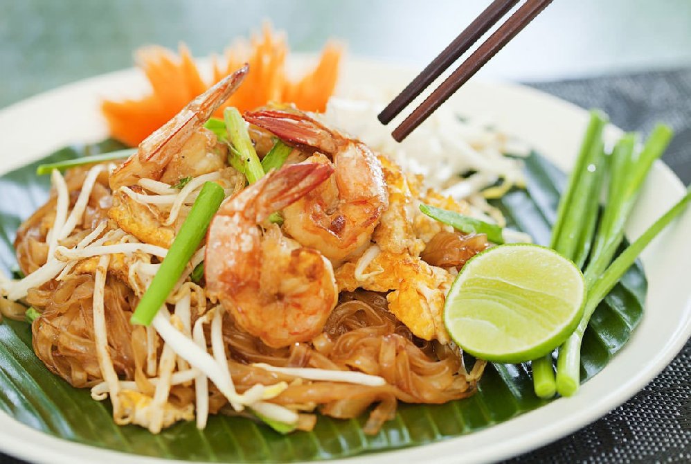Il pad thai è probabilmente il piatto thai più famoso al mondo ma la verità è che i thailandesi non lo considerano come piatto nazionale. A qualcuno piace tantissimo e ciò che lo rende un piatto così particolare e gradevole è proprio la tipica salsa, che si ottiene grazie a un equilibrio di sapori tra la pasta di tamarindo, la salsa di pesce e lo zucchero. Nei negozi orientali, potete trovare direttamente questa miscela che si chiama “salsa pad thai”. Il pad thai può essere accompagnato dai gamberi, come in, oppure dalla carne di pollo, di maiale o di manzo oppure nella versione vegetariana solo con uovo. In Thailandia, viene accompagnato dai germogli di soia nella fase finale di cottura e il tutto avvolto da una omelette cotta al momento, Servita a piacere con lime, coriandolo e arachidi sbriciolati.