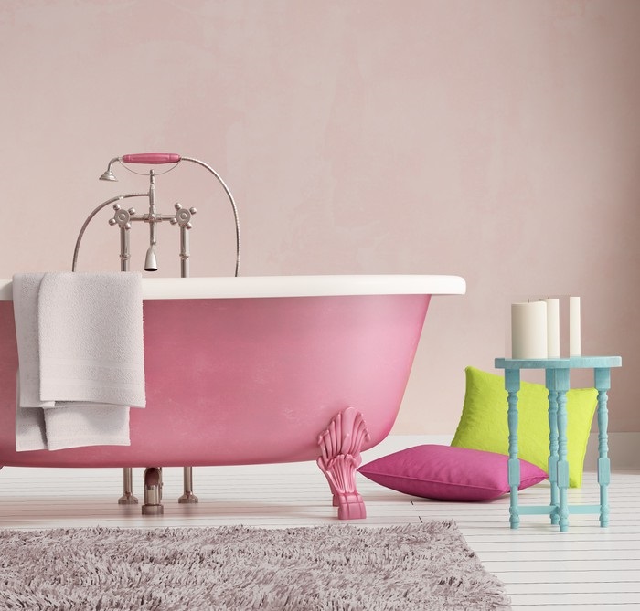 Vuoi un bagno romantico e alla moda? La pittura murale e lo smalto sono facili da applicare.Chi sceglie una vasca rétro da centro stanza ha un’indole sicuramente romantica, perché allora non accentuare il tutto con i colori Rose Quartz e Azzurro Serenity?!Se hai ereditato oppure scovato da un rigattiere la tua vasca del cuore, è probabile che abbia perso lo smalto originale. Per l’interno usa uno prodotto specifico, ma per l’esterno puoi sbizzarrirti con gli smalti pronti, oppure chiedere uno smalto preparato al tintometro in un centro fai da te. Naturalmente puoi uscire dall’area dei toni confetto, e orientarti sul giallo o il verde, perfino sul porpora o il viola; immancabili anche le tinte più neutre, ma sempre trendy. In nuance o in contrasto per il duo vasca/pareti. Le pitture murali, hanno un effetto vellutato e opaco; sono pronte all’uso, adatte alle pareti interne e basta passarne una sola mano.Gli smalti pronti, sono adatti per superfici in metallo, legno e muratura.