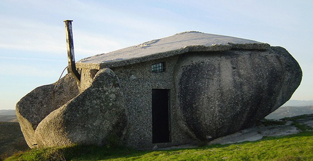 Quella che vi presentiamo oggi è una delle case più originali del mondo, situata nel nord del Portogallo.La “Casa do Penedo”, come è noto, è composta da quattro gigantesche rocce ed è diventata molto nota negli ultimi anni.Costruito tra il 1972 e il 1974 tra Cabeceiras de Basto e Fafe dal proprietario della casa, un ingegnere di Guimarães, la casa non ha elettricità, anche se è circondata da turbine eoliche.Oggi la Casa do Penedo è un piccolo museo, con cimeli e fotografie della costruzione e del paese vicino. Il suo nome significa “casa della roccia”, nome pertinente se considerate che quattro enormi massi fungono da fondamenta, pareti e soffitto della casa. Inizialmente l’ingegnere e la sua famiglia hanno vissuto lì, ma in seguito hanno deciso di donare la casa all’amministrazione locale, che ne ha fatto un museo. La sua posizione e l’insolita struttura, attirano molti turisti. Esternamente la casa è totalmente in pietra quindi, escludendo porte, finestre e tetto l’interno, che sembra essere stato “congelato” nel tempo, è molto accogliente ed è stato decorato con oggetti tradizionali. Le stanze hanno forme diverse, dovute alla forma stessa delle rocce. La scala che porta al piano superiore e gli arredi sono in legno. Durante gli ultimi anni la Casa do Penedo ha attratto l’attenzione di moltissimi appassionati paesaggisti in tutto il mondo. Nella sala principale c’è un bel caminetto in pietra e un divanetto realizzato in pietra e legno di eucalipto. Il proprietario non ha voluto rinunciare a tutti i lussi e così ha creato una piscina sullo sfondo, utilizzando le rocce del luogo, con una bella vista. L’incantevole piscina sembra una gemma preziosa incastonata nella natura