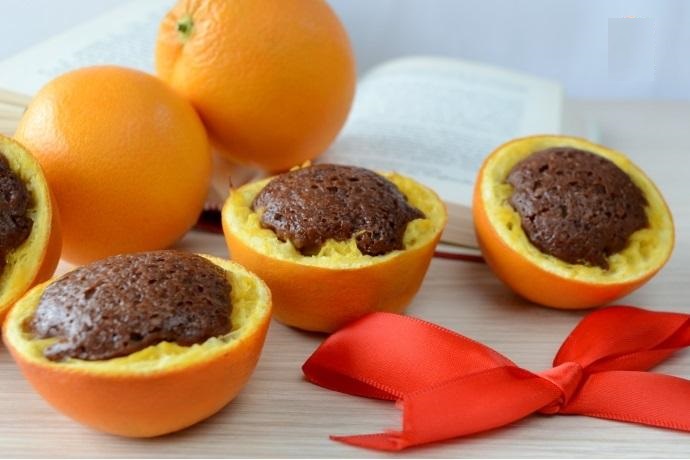 Muffin al cioccolato e arancia, ecco la ricetta per prepararli senza burro e senza pirottini, da cuocere e servire direttamente nelle bucce. Dolcetti soffici e sfiziosi di, sono perfetti per la merenda o per la prima colazione del mattino. Questi muffin permettono di utilizzare tutta l’arancia, senza sprechi oltre a conferire un tocco di originalità che piacerà di sicuro a grandi e piccini. Ingredienti per 6 muffin3 arance,12 gr di polpa di arancia,1 uovo,80 gr di zucchero di canna,130 gr di farina 110 gr cacao amaro,1/2 bustina di lievito per dolci. Ecco come preparare i muffin arancia e cioccolato: procedimento. Tagliare a metà le arance e spremere il succo con uno spremiagrumi; porre i gusci delle arance nello stampo per muffin, mettere in una ciotola capiente l’uovo sgusciato e mescolarlo con il succo e la polpa di arancia, incorporare anche lo zucchero e a seguire la farina, il cacao e il lievito, mescolare con una frusta per sciogliere eventuali grumi e versare il composto nelle bucce d’arancia riempendoli per tre quarti della loro capacità, infornare in forno caldo e cuocere a 180° per circa venti minuti, a cottura ultimata sfornare e far raffreddare su una gratella, gustateli tiepidi o freddi accompagnati da una tazza di thè o latte o dopo pranzo o cena come dessert