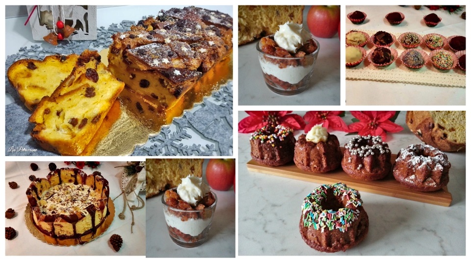 Le rimanenze del panettone dopo il Natale si prestano bene per la creazioni di torte e dessert, perché danno una fragranza e un profumo particolari e unici. Quale di queste ricette vi piace di più? Per accontentare il palato dei più piccoli, potete usare la pasta del panettone per creare del divertenti cakepops, che dovrete alla fine immergere dentro il cioccolato fondente e lasciarle freddare in frigo. Se a casa non vogliono più mangiare il dolce delle feste, la ricetta per riciclare il panettone che fa per voi è quella dei muffin. I muffin di panettone sono dolcetti arricchiti con pezzi di panettone e scorza di arancia. La base dell’impasto è quella dei muffin , ma il sapore finale è unico e profumato. Tra le variazioni che potete dare al panettone, questa è davvero unica: il budino di panettone, soffice e invitante, farcito con frutti di bosco, panna e cioccolato. Il semifreddo al panettone è perfetto per rinfrescare il palato a fine pasto con uova, zucchero, ricotta, panna montata e liquore di arancia. Dopo averlo fatto freddare in frezeer, servitelo cosparso con gocce di cioccolato. Tiramisù di panettone è un classico rivisitato in modo originale. Il risultato vi sorprenderà: per farlo è sufficiente sostituire i biscotti savoiardi con le fette di panettone uniforme e spesse circa 2 cm. Potete profumarlo con un aroma fior d’arancio, o vaniglia. Lo sformato di panettone con crema chantilly e frutti di bosco è un’alternativa originale e raffinata per riciclare il panettone. Profumatelo con rum, arancia e frutti di bosco saltati in padella con lo zucchero.