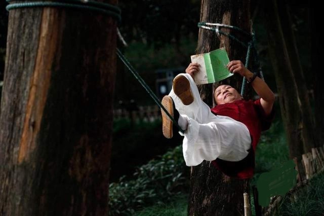 Liang, un cinquantenne che si era sempre dedicato ad allenamenti di arti marziali, ha messo a punto una nuova tecnica di rilassamento. Qualcuno fatica a riposare comodamente su un letto o un divano: non è il caso del cinquantenne Liang può essere incontrato nei parchi di Huangyan, città nelle vicinanze di Shanghai, deve spesso i passanti si fermano a scattare foto all’uomo, stupiti della sua capacità di stare in equilibrio su una corda e soprattutto di avere un aspetto assolutamente rilassato e pacifico mentre riposa sulla corda. Liang non è infastidito da tanta attenzione e spesso saluta i passanti, un piccolo gesto che probabilmente ad altri farebbe perdere l’equilibrio. Per un tumore alla gola al terzo stadio gli è stato imposto il riposo assoluto, così lui ha deciso di riposare tutto il giorno su una stranissima amaca: un’unica fune legata tra due alberi. La curiosità attorno a questa nuova tecnica è stata tale da avvicinare allo specialista di Kung Fu moltissime persone tra i suoi allievi e non. Il segreto è rimanere sempre concentrati e bilanciare bene ogni parte del corpo rispetto alla corda. All’inizio l’esercizio prevedeva che rimanesse in equilibrio su tre corde e durava qualche minuto, poi la sua grande costanza l’ha portato a ridurre la corda ad una sola e ha imparato a stare in equilibrio per moltissime ore e anche per un giorno intero!