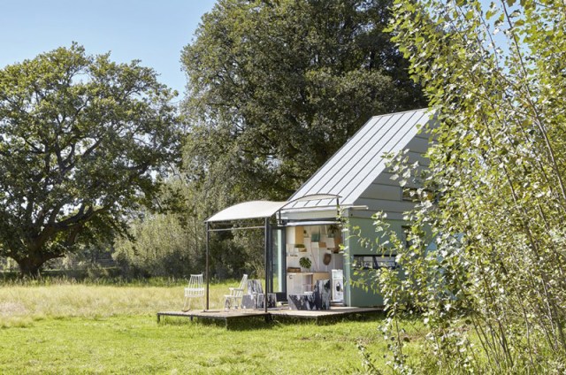 Una casa trasportabile di 17,2 mq con tante idee geniali per arredare i piccoli spazi Pod è un innovativo sistema prefabbricato e componibile progettato dall’archietto Clara da Cruz ‘Pod’ è una parola inglese che significa ‘bozzolo’. Poggia su una pedana di legno di 24 mq, che comprende anche una terrazza esterna. A seconda del terreno la pedana necessità di ancoraggi in legno o cemento, come qualsiasi casa prefabbricata. Questo è il blocco base di 17,2 mq che può raddoppiare oppure può essere unito ad altri moduli, a schiera o in parallelo. L’impianto elettrico e quello idraulico sono integrati nei pannelli, e necessitano soltanto dell’attacco esterno. Questa mini casa si trova in Sudafrica, a Johannesburg, i proprietari, una giovane coppia, hanno affittato un terreno e voilà! Tutte le parti sono studiate per essere facilmente trasportate e rispondere ai cambiamenti di vita di chi ci abita Per far entrare tutte le necessità di una vera casa in 17,2 metri quadrati è necessario che ogni spazio, anche minimo, sia organizzato per svolgere funzioni diverse: così, ad esempio, il corridoio di ingresso è in realtà la cucina, la mobilia è tutta studiata per sfruttare ogni piccolo spazio, il soppalco viene usato come studio ma all’occorrenza può ospitare un amico o essere attrezzato a lavanderia. Quando il tempo è bello, l’intera parete d’ingresso si apre con ante a libro: lo spazio si dilata, si sposta il tavolo e le sedie fuori e ci si pranza sembra di cucinare all’aperto le finestre si aprono a bilico. Piccole, in proporzione con i mini spazi, ma numerose e distribuite nei punti strategici. Ognuna è una cornice diversa sull’esterno.