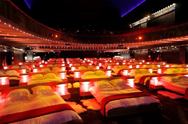Se amate la comodità, principalmente durante la visione di un film, l’idea che sta prendendo vita a Napoli non potrà che farvi sognare ad occhi aperti. Il progetto è stato ideato da tre imprenditori e ha lo scopo di risollevare il vecchio cinema Ambasciatori, in agonia dopo l’avvento dei multisala. Questa nuova forma di intrattenimento prende il nome di Hart che significa cuore in olandese, e combina le parole di earth e art, ovvero terra e arte. L’idea è quella di sostituire i 340 posti poltrone del cinema originale con 110 posti molto speciali. Le prime tre file sono state infatti dotate di letti ad una piazza e mezza, quelle più indietro, invece, sono state risistemate con confortevolissimi divani. Proprio la comodità è la parola d’ordine di questa nuova sala: non per niente, accanto ai letti, c’è persino un comodino dove appoggiare borse e giacche. L’unico aspetto che ha lasciato perplesso più di qualcuno è il fatto che i film si ascolteranno in cuffie. Secondo gli organizzatori questo è un punto di forza dato che nella sala c’è anche un bistrot dove le persone possono godersi un aperitivo in compagnia.