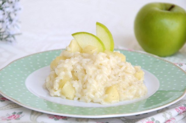 Il frutto più classico, diffuso e comune è anche uno dei più benefici e salutari: la mela è davvero un concentrato di benessere che non dovrebbe mai mancare dall’alimentazione. Verde, rossa, gialla, la mela è protagonista di miti e leggende, simbolo utilizzato nella mitologia, nell’arte, nelle narrazioni popolari, nelle favole, da Biancaneve a Guglielmo Tell, da Adamo ed Eva a Isaac Newton. Frutto per antonomasia, è anche un’alleata della salute tra le più efficaci in natura Ideali anche per speciali primi piatti tra questi  il risotto alle mele, come  si realizza?  Sbucciando le mele privandole del torsolo e tagliandole a dadini per poi cuocerle con il riso insaporito da vino aglio e cipolla, al termine si uniranno panna e parmigiano grattugiato. Ecco i passaggi per il risotto alle mele. Mondate le mele, sbucciandole ed togliendo il torsolo con l’apposito strumento. Tagliate a dadini e sbollentatele brevemente. Irroratele con il vino bianco. Preparate un trito fine con cipolla e aglio, fatelo imbiondire in burro e olio. Aggiungete il riso e mescolate, tostandolo un po’. Unite i dadini di mela con il vino e il limone. Mescolate finché il vino risulti totalmente evaporato. A parte, tenete in bollore il brodo. Aggiungete il brodo a poco a poco, mescolando ad ogni aggiunta. A due terzi di cottura mantecate con la panna e il parmigiano reggiano grattugiato. Regolate di sale, spolverizzate con il pepe di Caienna e servite su piatti caldi, decorando con fettine di mela.