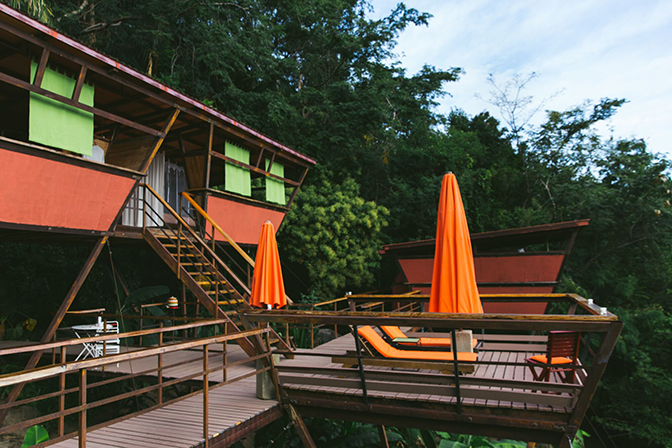 L’idea di base è quella di una casa sull’albero proprio come quella che sognavamo da bambini quando si giocava in giardino, ma con tutto il lusso e tutti gli agi di un resort di alto livello, e soprattutto con il panorama circostante della giungla che si tuffa nell’oceano. Questa idea è stata realizzata a Yelapa, un piccolo villaggio sulla costa occidentale del Messico: qui il Verana Hotel struttura turistica da sempre attenta al rispetto dell’ambiente, ha inaugurato la sua nuova V House, Messa a punto da due architetti, questa casa era stata inizialmente pensata per ospitare il personale dell’hotel, ma il suo successo è stato tale da spingere il management della struttura a ripensarla e destinarla ai clienti. Si tratta, in definitiva, di un complesso eco-friendly di piramidi capovolte incastonate in blocchi di cemento, il cui scheletro è costituito da travi in acciaio. Il complesso in questione si alza di circa 5 metri dal suolo, o meglio dalla i piramide costituisce una camera, con esterni interni e mobilio costruiti in legno e materiali locali per minimizzare l’impatto ambientale. Quella della V House è una struttura modulare, a cui possono essere aggiunte nuove piramidi e dunque nuove camere a piacimento. Al momento quella presente al Verana Hotel conta una camera padronale e due camere per ospiti di circa 5 x 5 metri ciascuna, dotate di bagni privati e di un tetto che consente di recuperare l’acqua piovana.