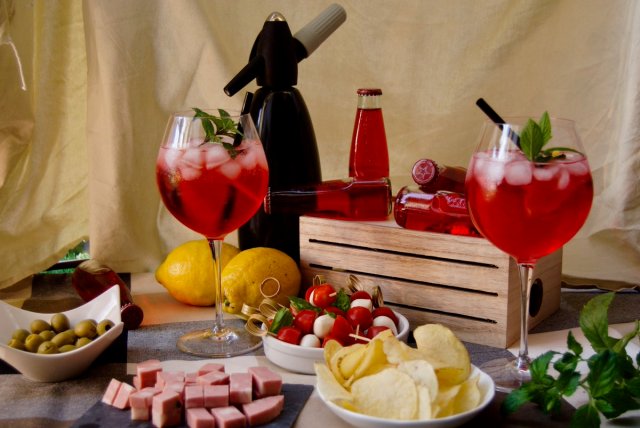 L’ora del giorno in cui i colori iniziano a farsi più tenui è il momento della giornata in cui si ha voglia di sentirsi leggeri. Quale miglior occasione per sedersi in giardino e dedicare a questo momento magico un cocktail da consumare in compagnia. Ma anche da soli. Ecco un suggerimento da abbinare a snack e patatine In un calice baloon, con abbondante ghiaccio, versar e 5 cl di Vermouth bianco, una bottiglietta di bitter rosso e completare con uno spruzzata di soda. Far fuoriuscire gli olii essenziali della scorza di limone sopra al drink, passare la scorza anche sul bordo del calice e usare la stessa come decorazione. Aggiungere la menta e servite…sarà un successo