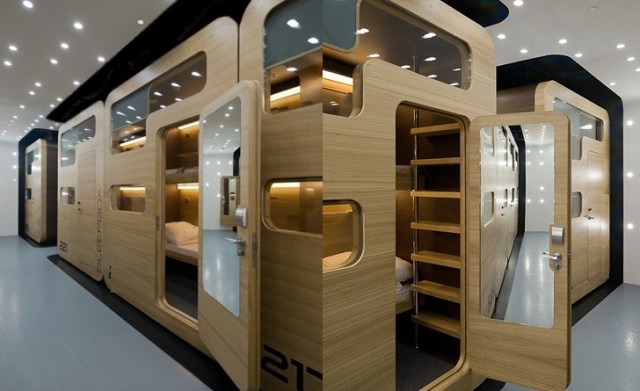 Un hotel “portatile” da posizionare dove si vuole, è l’ultima rivoluzionaria proposta sostenibile a zero emissioni CO2 per venire incontro a viaggiatori innovativi.Il suo predecessore è il Capsule Inn di Osaka, sistema di hotel a occupazione densa, che però assomigliava più a un alveare di loculi in cui bisognava infilarsi gattoni che ad un hotel. Niente a che vedere con la Sleepbox, una recente proposta a grande efficienza energetica dello studio russo Arch Group che in soli 3.75 mq racchiude una stanza d’albergo.Pensata per gli uomini d’affari sempre in giro per il mondo e in transito da un aeroporto all’altro, la Sleepbox può essere installata nelle stazioni ferroviarie, negli aeroporti e in tutti quei luoghi in cui ci possa essere un gran numero di persone che ha bisogno di riposo. In paesi con un clima temperato può essere anche utilizzata per strada.Elemento funzionale principale della “scatola”, delle dimensioni di 2×1.4 metri per 2.30 m di altezza, è il letto (2×0.6 m), dotato di sistema automatico di cambio delle lenzuola rigorosamente in fibre naturali che vengono riavvolte da un estremo all’altro, cambiando il letto. Se il cliente vuole dormire nel massimo comfort, può prendere il normale set di biancheria da letto per un costo aggiuntivo.Sleepbox è dotata di un sistema di ventilazione, allarme acustico, TV LCD integrato, Wi-Fi, piattaforma per un laptop e dispositivo per ricaricare il cellulare. Sotto il pavimento c’è lo spazio per borse e valige All’uscita del cliente avviene il cambio automatico della biancheria da letto e si accendono le lampade al quarzo esterne che indicano la disponibilità della “camera”. È possibile effettuare il pagamento presso i terminali speciali che forniscono la chiave elettronica di accesso ai clienti che possono acquistare da un minimo di 15 minuti a diverse ore. Cos’ha di sostenibile? Dal punto di vista della attuazione, i materiali sono tutti originati da materie seconde da riciclo. L’automazione è massima, regolata da un sistema di microdomotica che riduce i costi energetici di utilizzo per tutte le funzioni alimentate da energia elettrica: massimo risparmio energetico dovuto alla organizzazione dei consumi, massima efficienza, zero emissioni di CO2, basso impatto ambientale.Ma soprattutto la sostenibilità sta in un aspetto che normalmente non viene tenuto in conto: alloggiando in questo tipo di hotel, vengono azzerati gli altissimi costi di gestione delle parti comuni degli alberghi, vaste e spesso inutilizzate, e i costi di trasporto per raggiungere e lasciare gli alberghi. Un risparmio in inquinamento ambientale non indifferente!